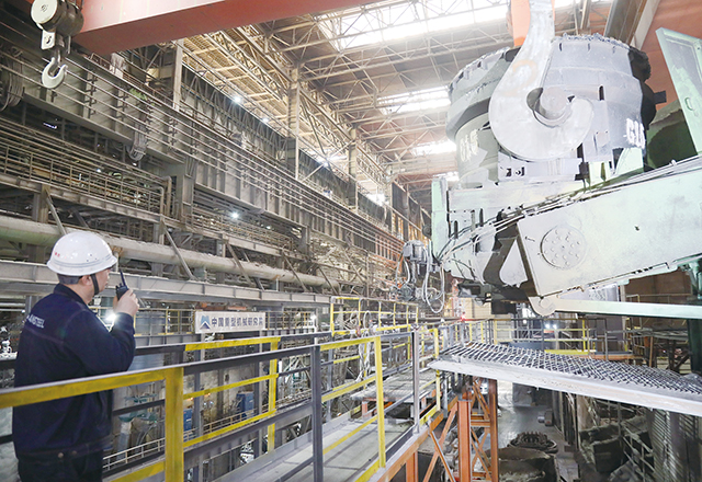 [圖片說明]: 指揮吊車上鋼水重罐。