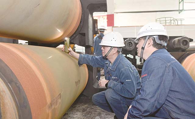6月12日,攀鋼釩板材廠熱軋生產(chǎn)單元職工劉斌與彭彥忠(右)正在檢查輥輪表面質(zhì)量。進(jìn)入二季度以來,該廠工會(huì)以“增產(chǎn)提質(zhì)降本”為主題開展專項(xiàng)勞動(dòng)競賽,圍繞優(yōu)化生產(chǎn)流程、強(qiáng)化工藝管控,在保障產(chǎn)品質(zhì)量前提下提效降耗;組織技術(shù)研討、經(jīng)驗(yàn)分享等活動(dòng),激發(fā)員工創(chuàng)新活力,為實(shí)現(xiàn)經(jīng)營目標(biāo)創(chuàng)造良好條件。